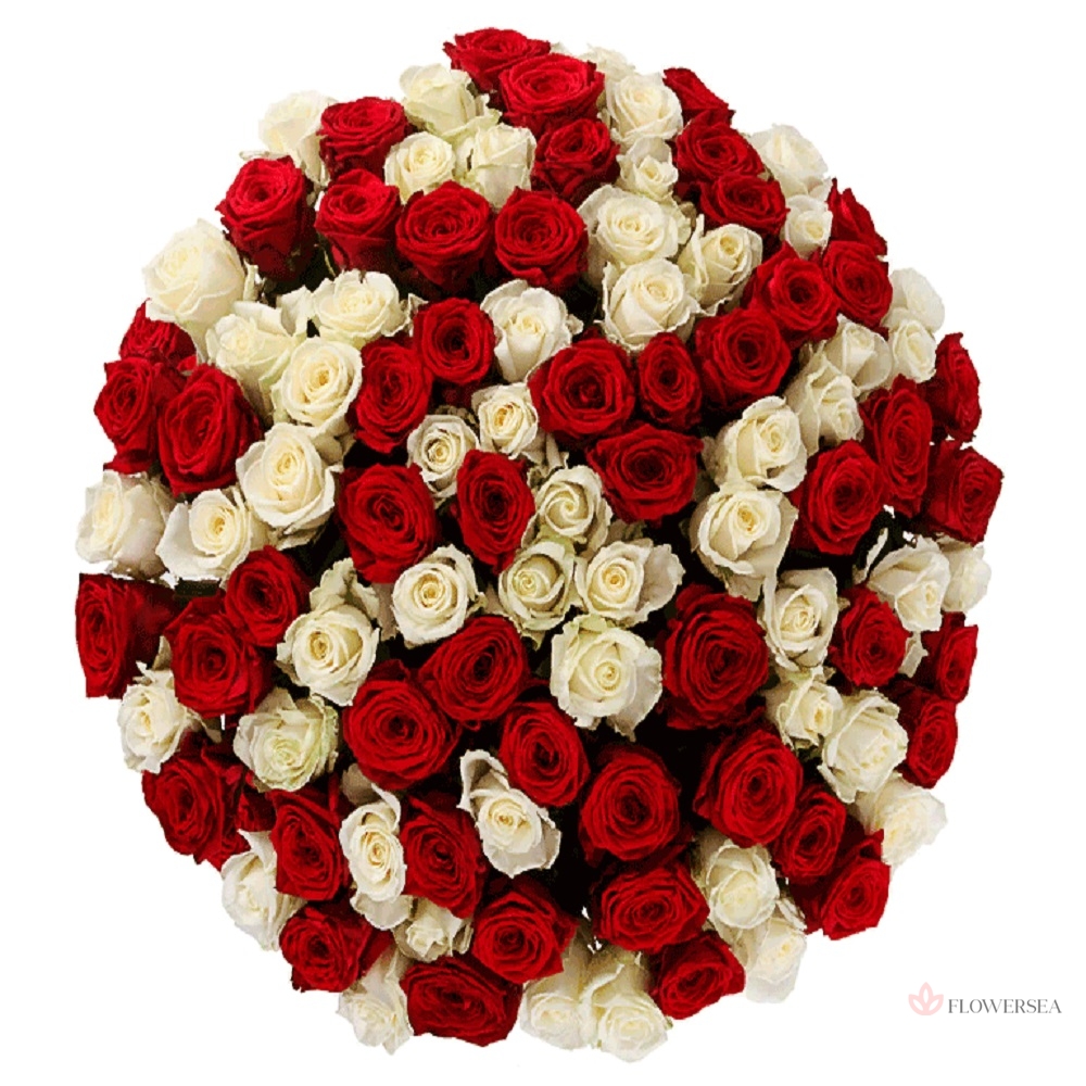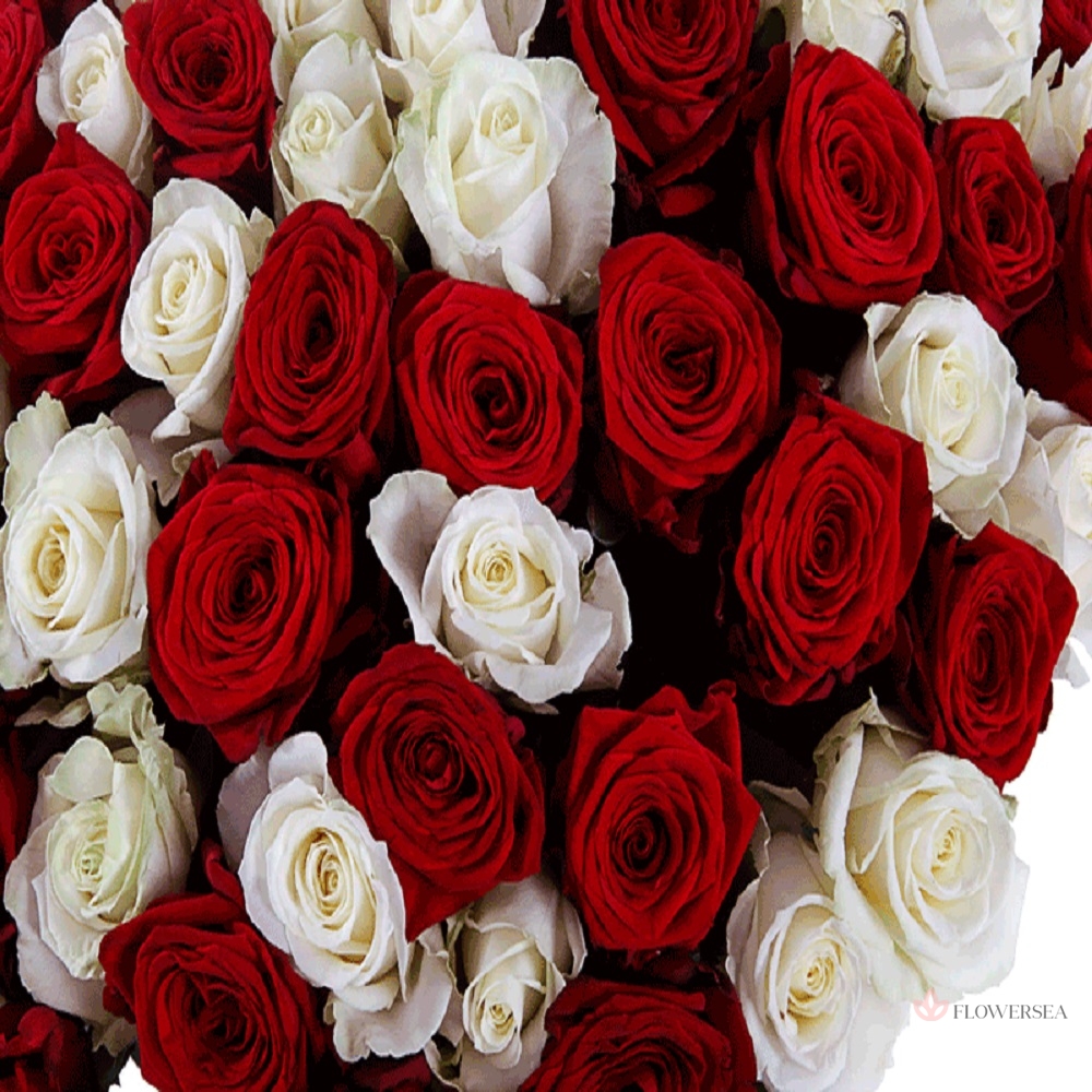 Букет з розкішних троянд сортів Гран прі та Аваланж, оформлених атласною стрічкою. Чудове поєднання троянд кольору пристрасті і поваги, з трояндами кольору чистої любові. Такий букет буде приємно вручити з нагоди пам'ятної дати, він стане чудовою прикрасою будь-якого свята.