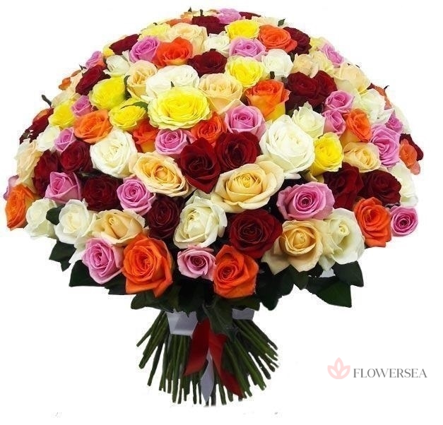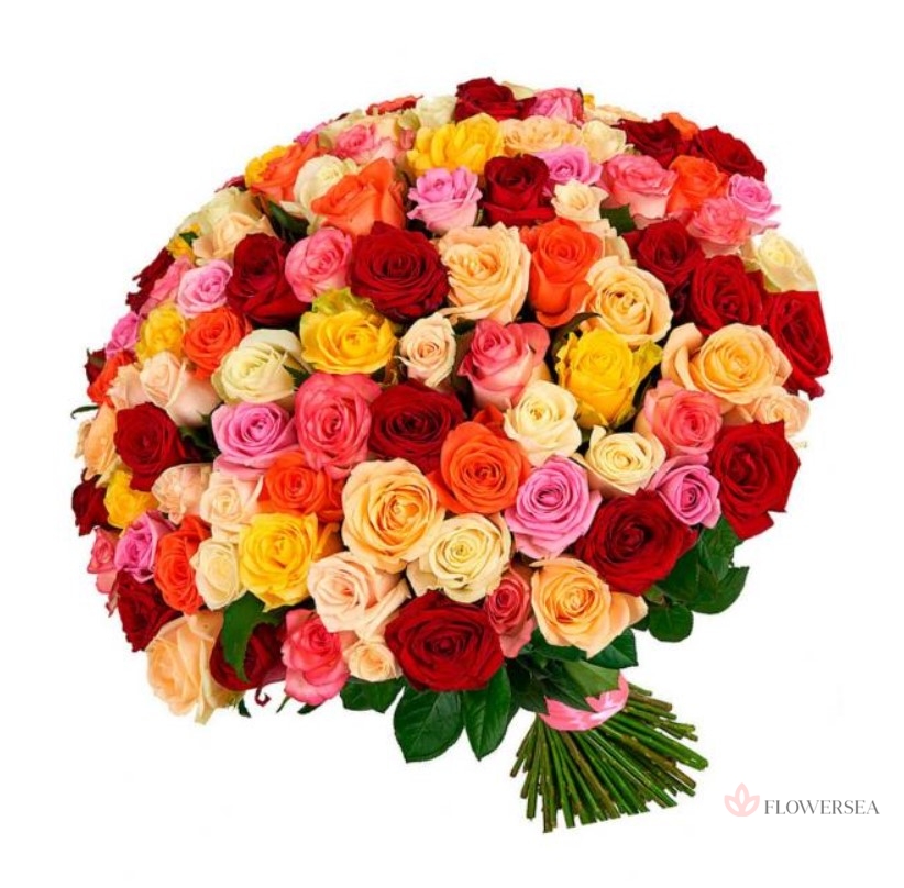 Різнокольорові троянди в одному букеті, оформлені атласною стрічкою. Вони як палітра фарб художника- райдужні, яскраві, і фантастично красиві. Кожен колір дарує свої емоції, кожна троянда передає свій сенс і значення. Такий подарунок універсальний, він справить незабутнє враження на свого щасливого одержувача, прикрасить кожен день і свято, і залишиться самим яскравим і незабутнім подарунком.
