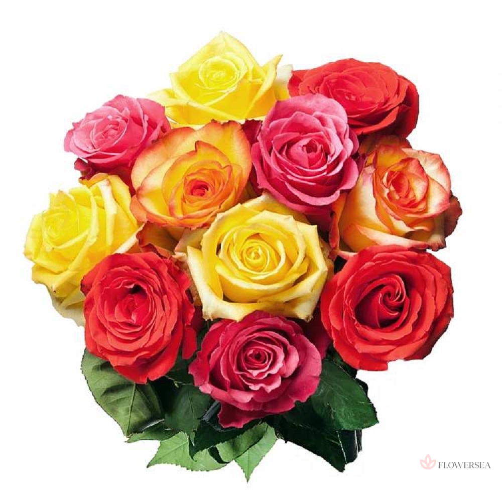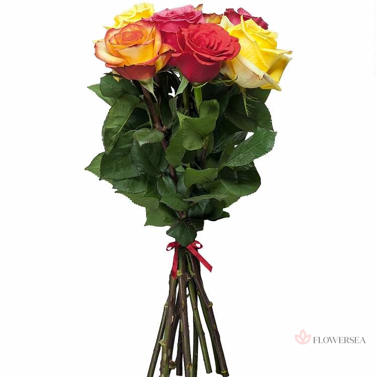 Букет різнокольорових троянд, який демонструє найтепліші побажання. Троянди оформлені атласною стрічкою, що формує шикарний букет. Безсумнівно яскравий сюрприз, і надихаючий подарунок.