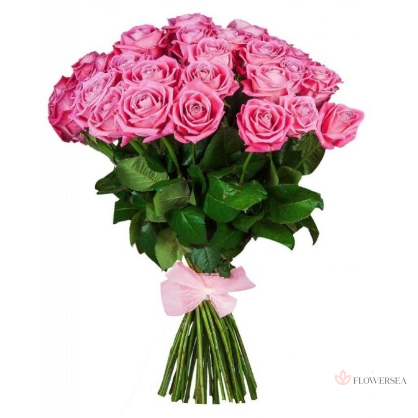 Букет з рожевих троянд сорту Аква, красиво оформлених атласною стрічкою. Милий і барвистий знак уваги, завжди актуальний і позитивний подарунок.