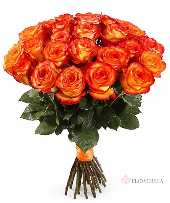Красиві жовто - оранжеві троянди сорту Циркус, оформлені атласною стрічкою. Цей сорт унікальний своїм незвичайним кольором, і красивим пишним бутоном. Троянди кольору фарб осені, немов ввібрали в себе тепло осіннього сонця, і щедро діляться ним зі своїм володарем. Такий подарунок можна піднести з кожного приводу, безумовно він актуальний для одержувачів обох статей, і будь-якого віку.