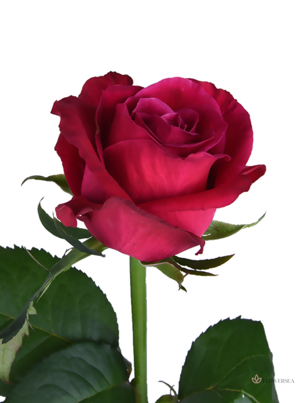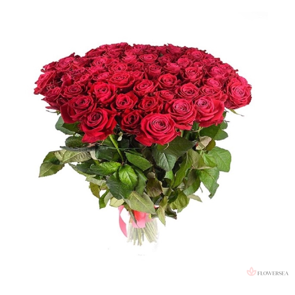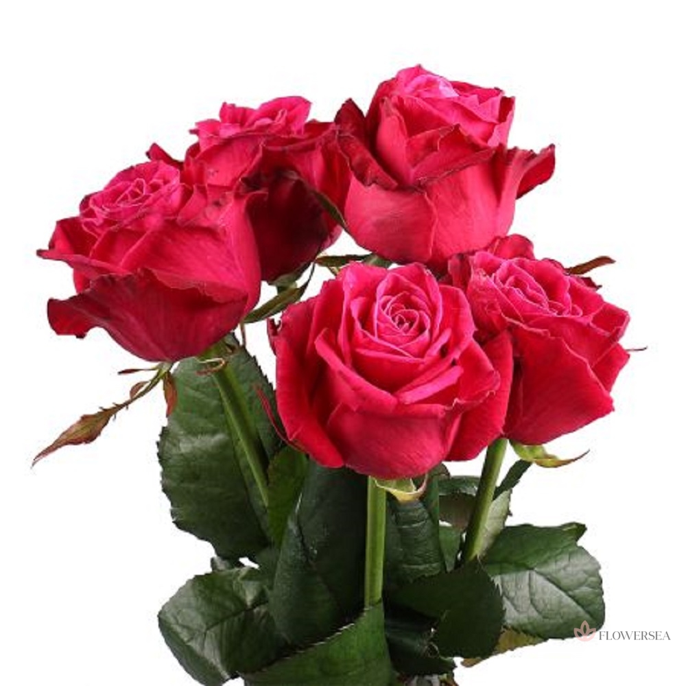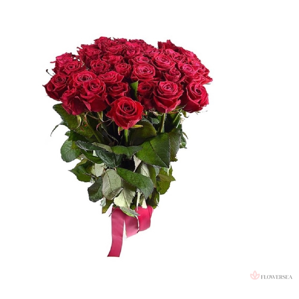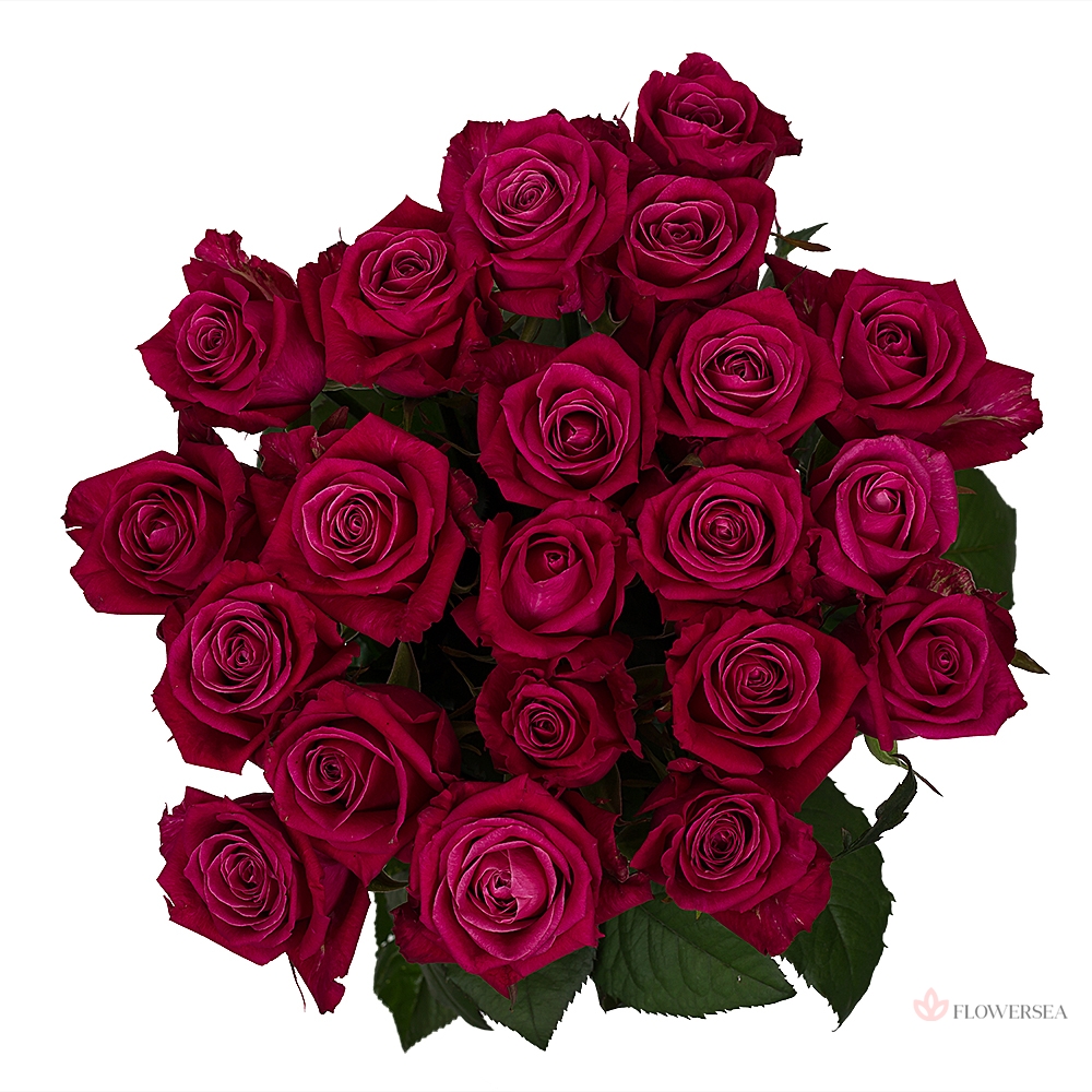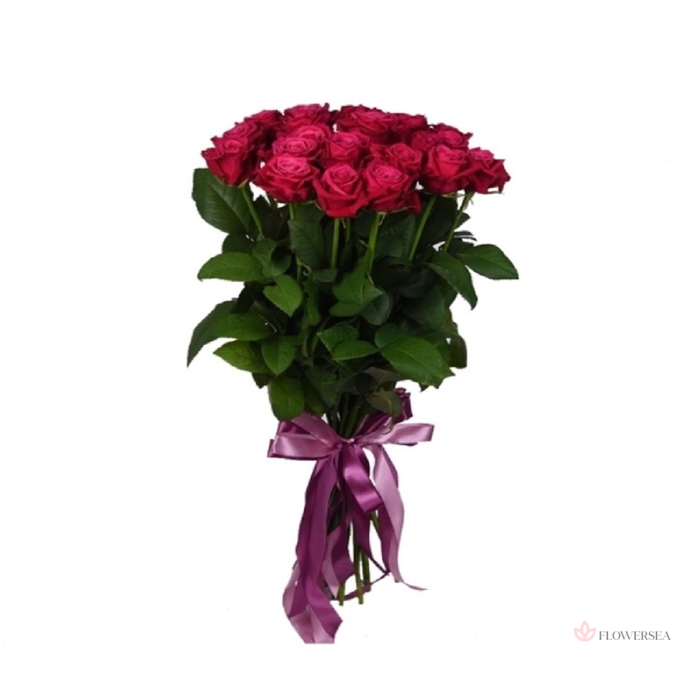 Троянди насиченого, темно-малинового кольору сорту Шангрі-Ла, з красивими і щільними бутонами. Вишуканий і стильний букет оформлений атласною стрічкою. Чудовий подарунок, який прикрасить як свято, так і романтичний вечір. Такий сюрприз гарантовано здивує і порадує прекрасних дам, і молодих чоловіків.