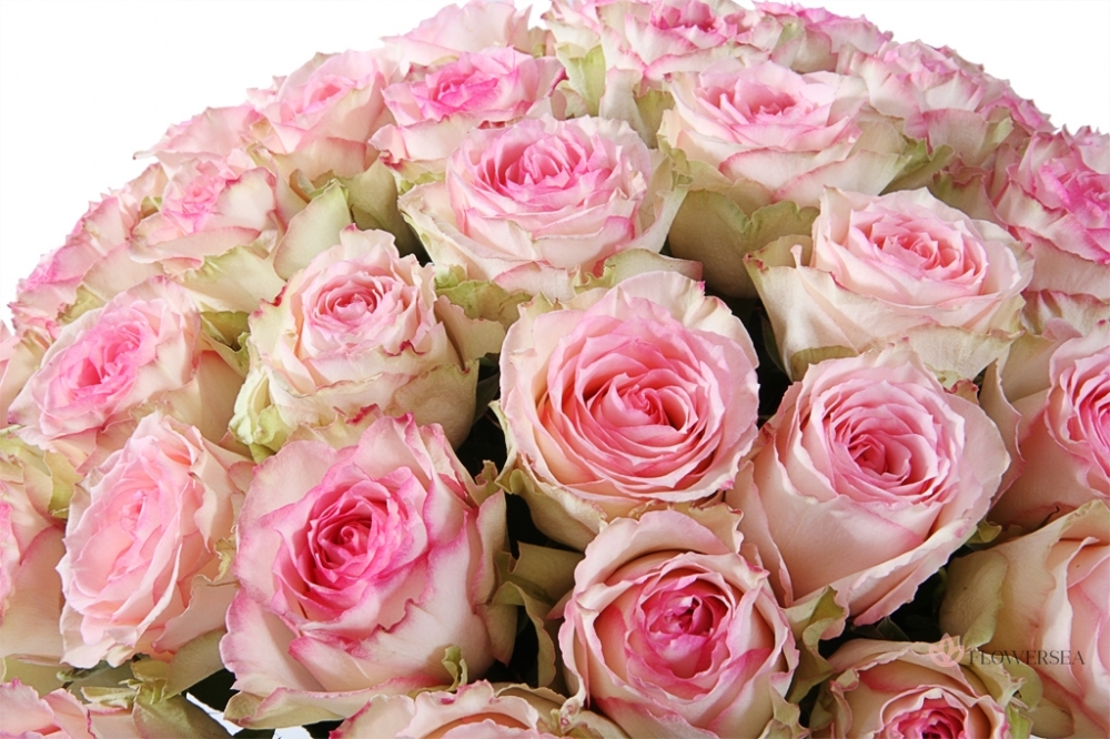 Букет з 25 троянд сорту Есперанс, оформлений атласною стрічкою. Неповторна квітка, яка приковує погляд зеленувато-білим низом з рожевим верхом, і великим пишним келихоподібним бутоном. Квітка має незвичайну форму пелюсток. Якщо Ви хочете зробити по-справжньому королівський подарунок дорогій людині, цей варіант для вас!