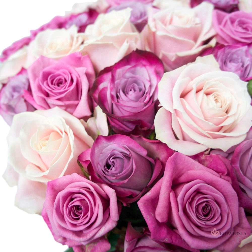 Ніжні і яскраві троянди красиво зібрані в один букет, і оформлені атласною стрічкою. Чудове поєднання троянд кольору щирості і ніжності, з трояндами кольору чистої любові. Такий букет буде приємно вручити з нагоди будь-якого приводу, він стане чудовою прикрасою кожного свята.