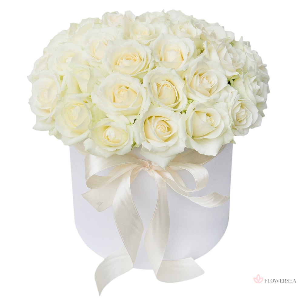 31 біла троянда в коробці
