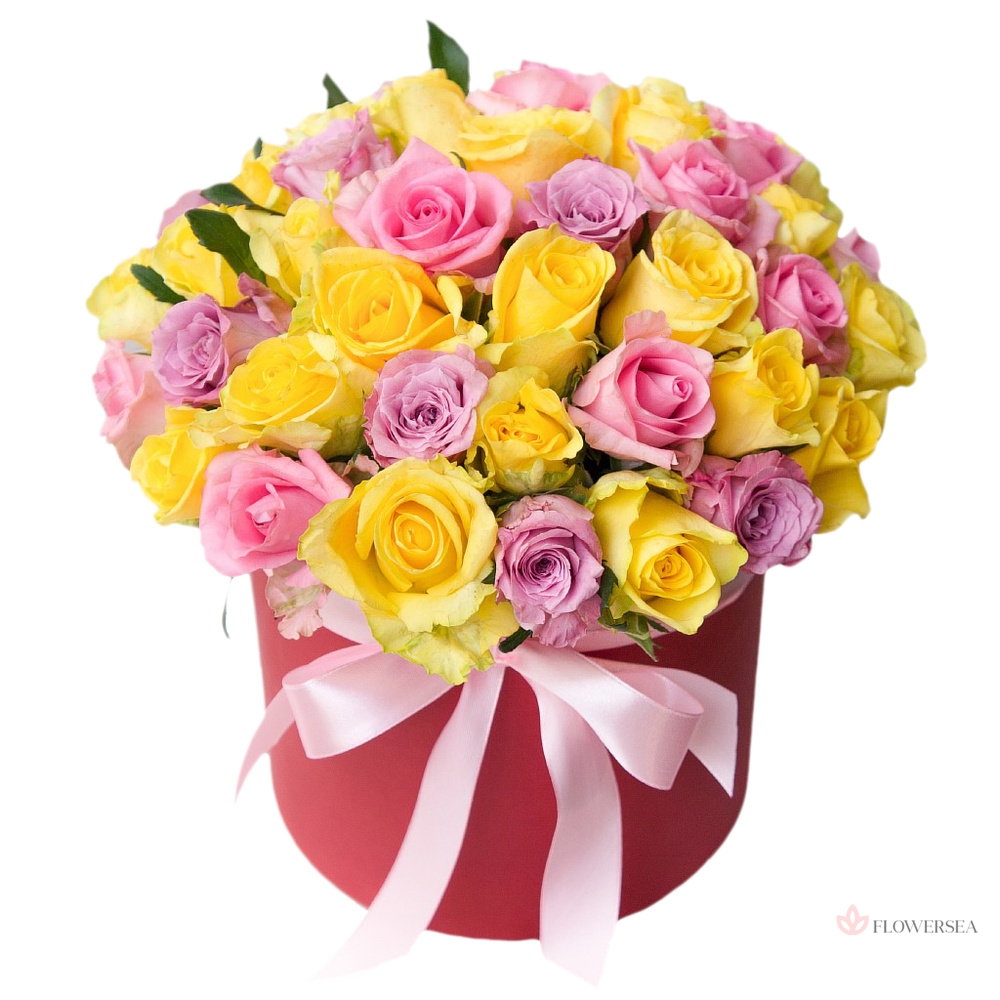 31 різнокольорова троянда в коробці