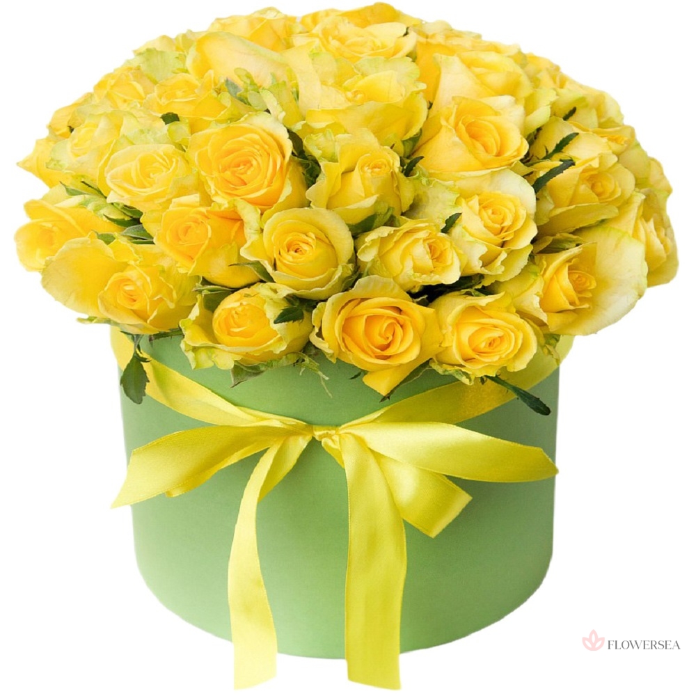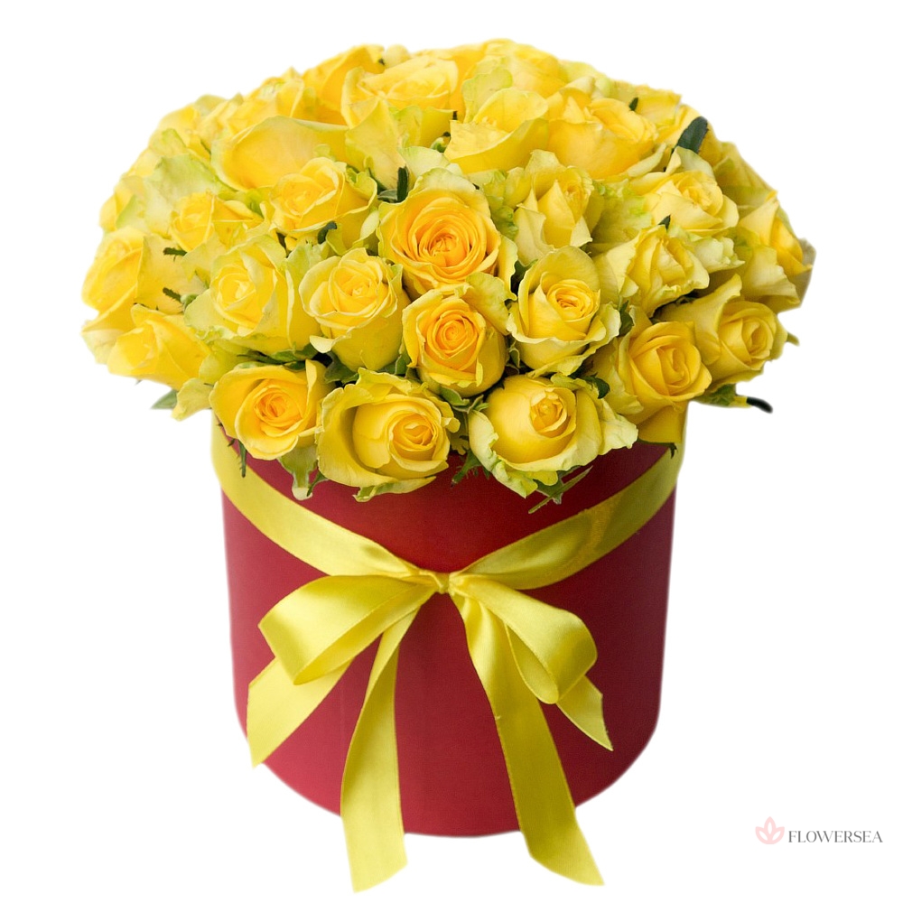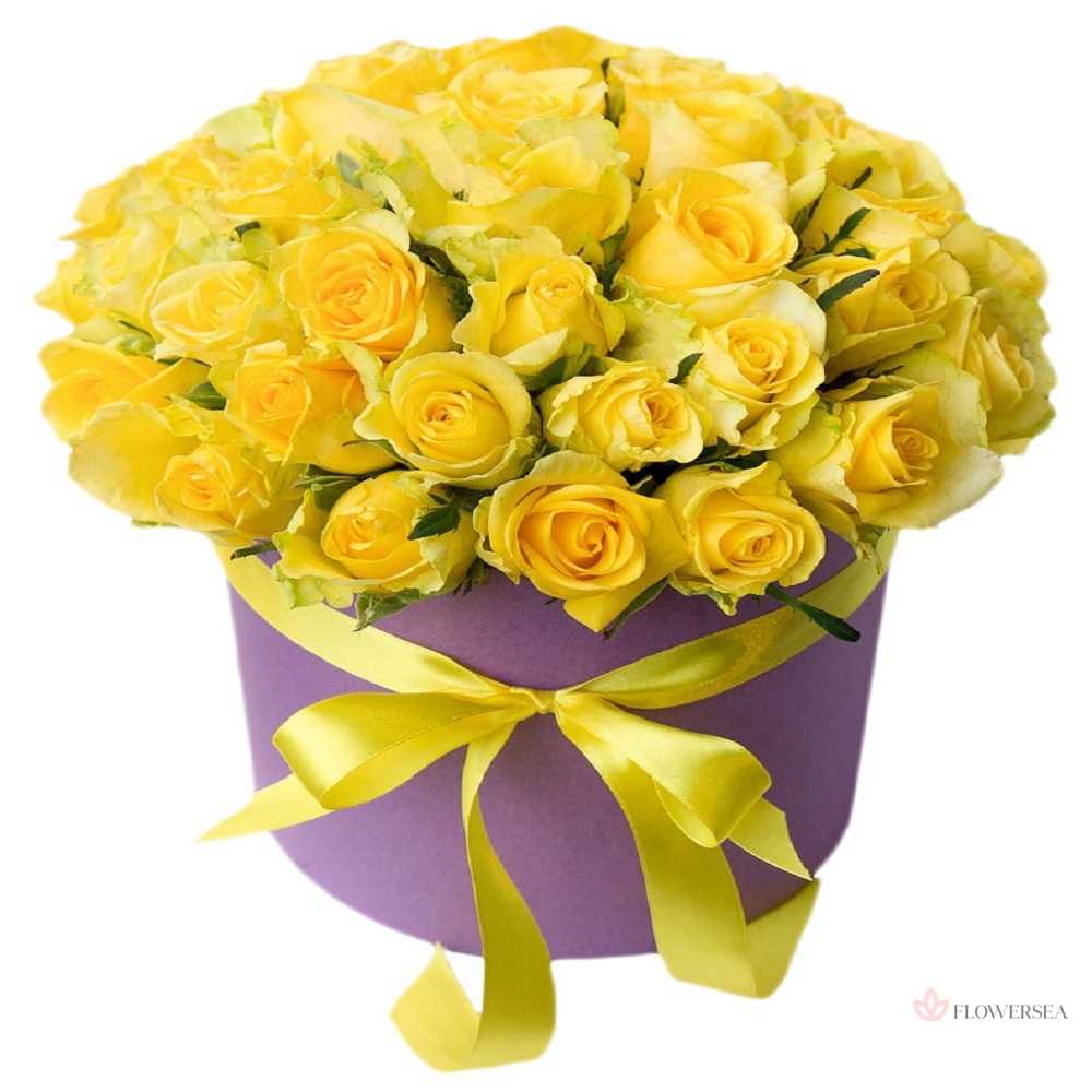 41 жовта троянда в коробці
