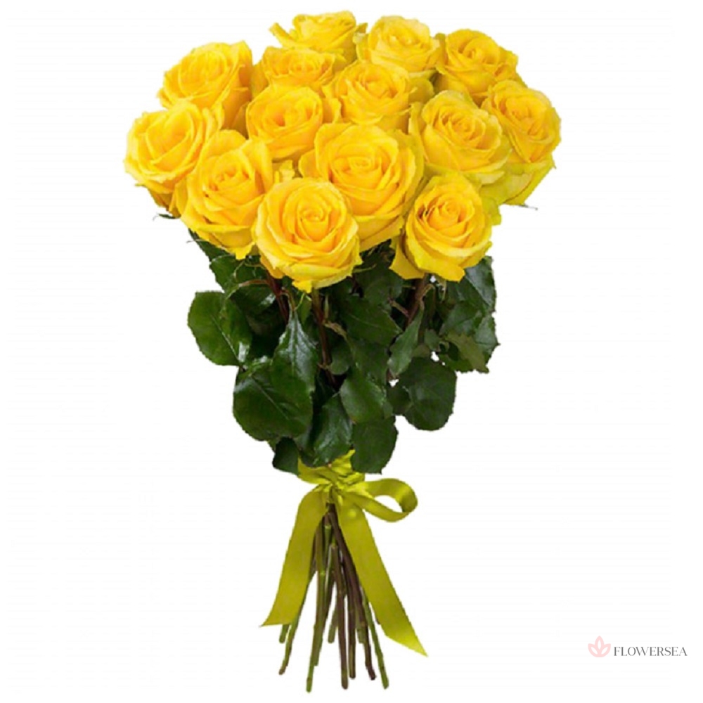 Букет жовтих троянд, оформлених атласною стрічкою. Троянди кольору сонця, багатства, гармонії і достатку-подарунок який завжди приємно вручити. Жовті квіти наповнюють простір сонячним теплом, і завжди дарують літній настрій.