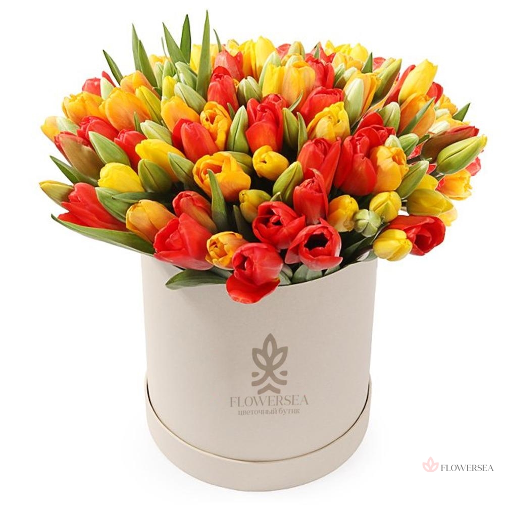 101 червоно-жовтий тюльпан в коробці