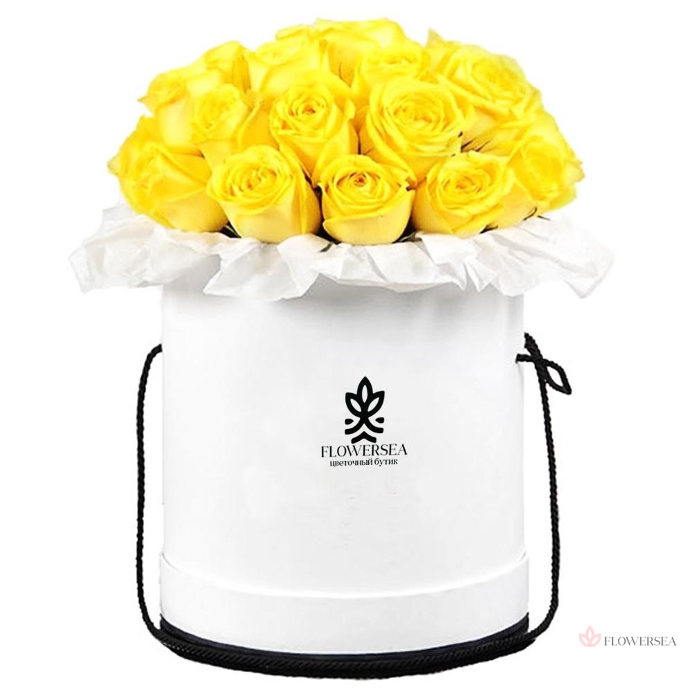19 жовтих троянд в коробці