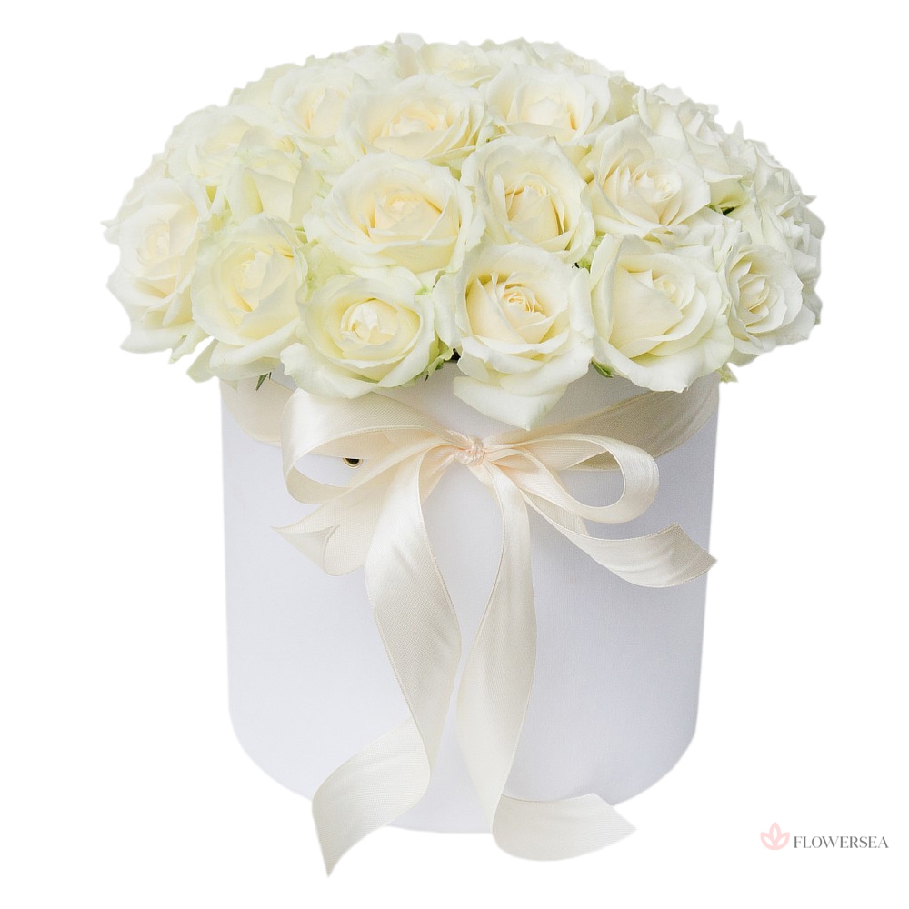 31 біла троянда в коробці