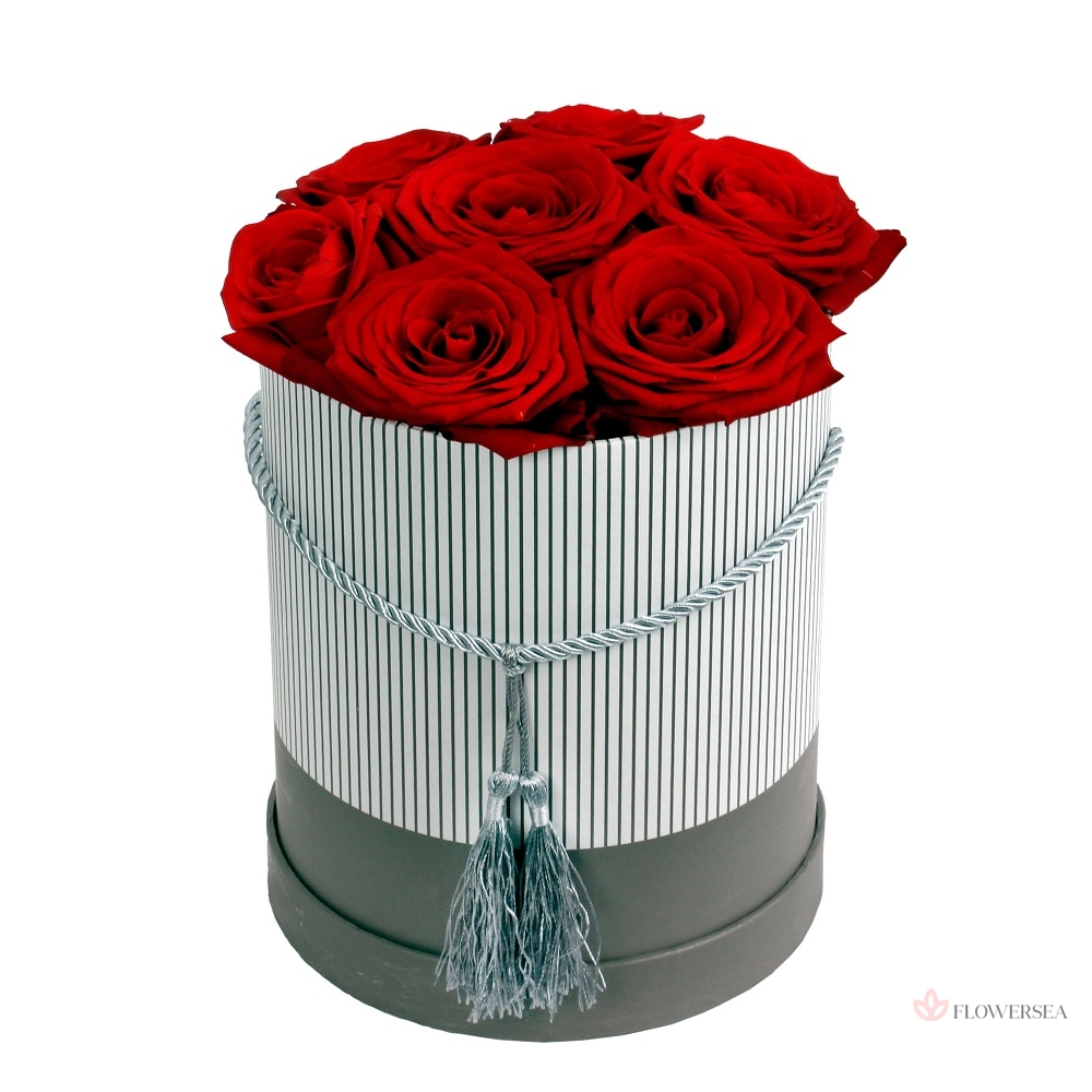 7 червоних троянд в коробці