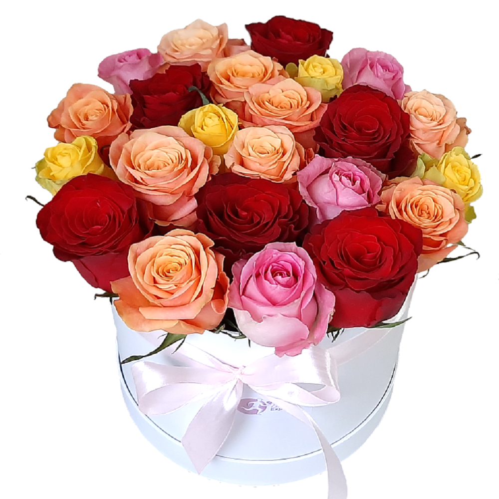 21 різнокольорова троянда в коробці