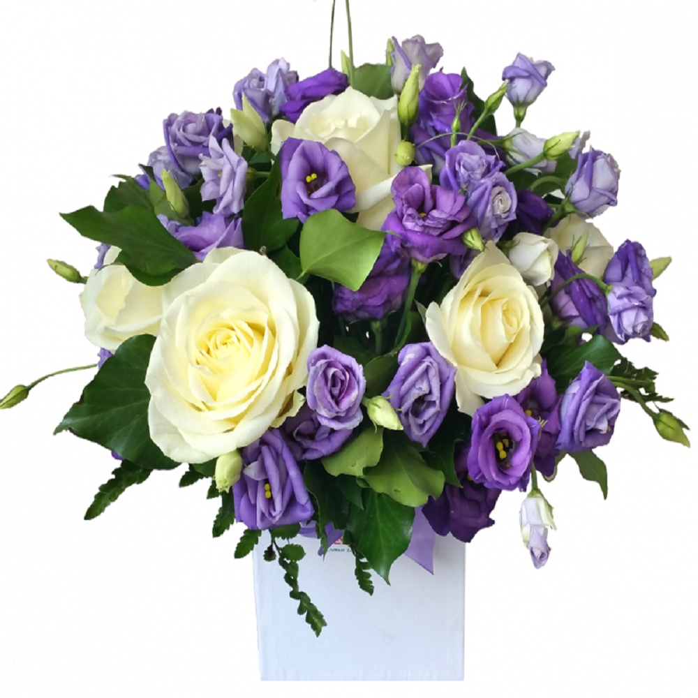 Троянди і еустоми в коробці