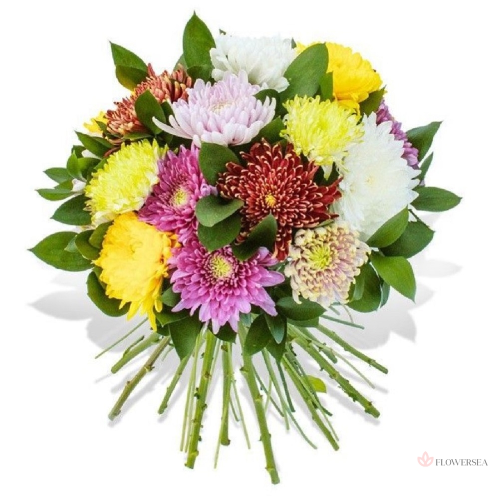 Букет з 15 різнокольорових хризантем
