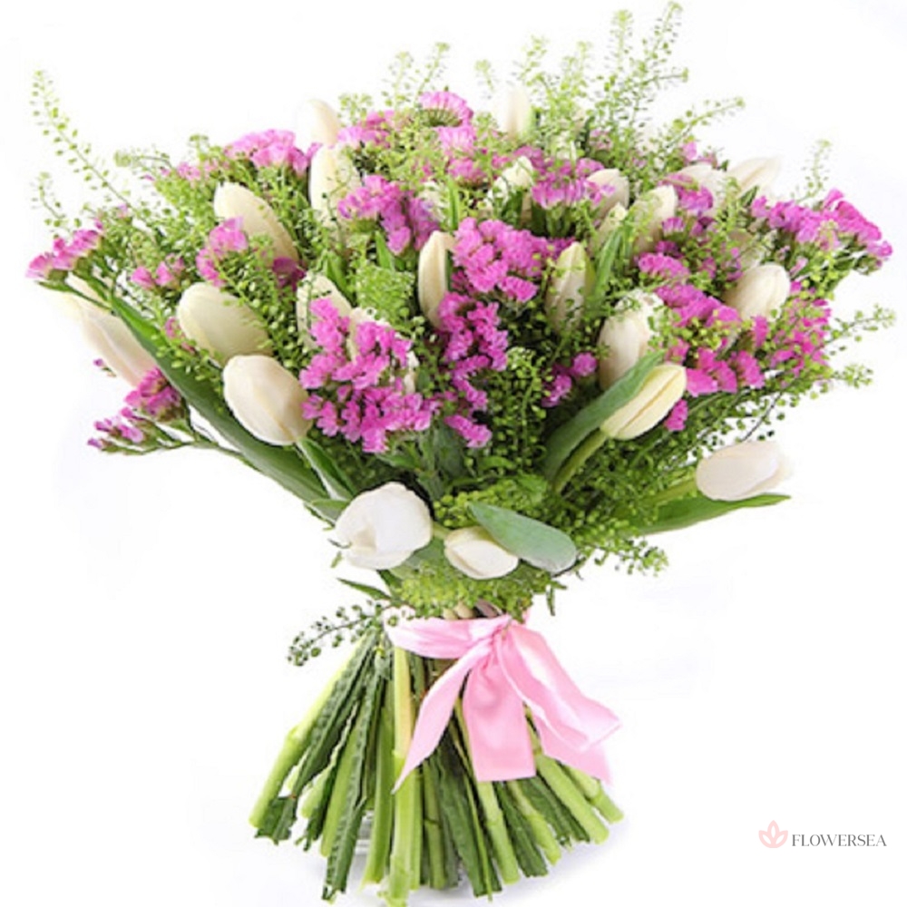 51 білий тюльпан зі статицею