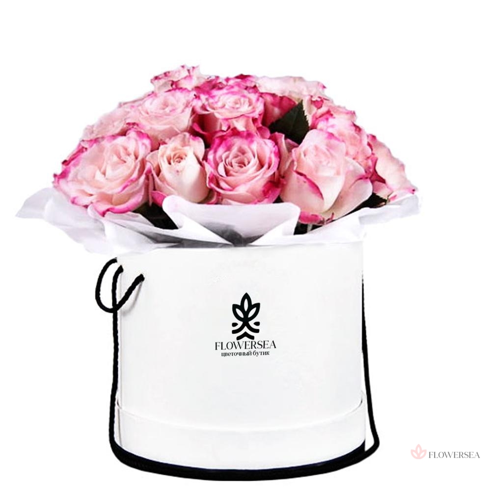 7 білосніжних троянд в коробці