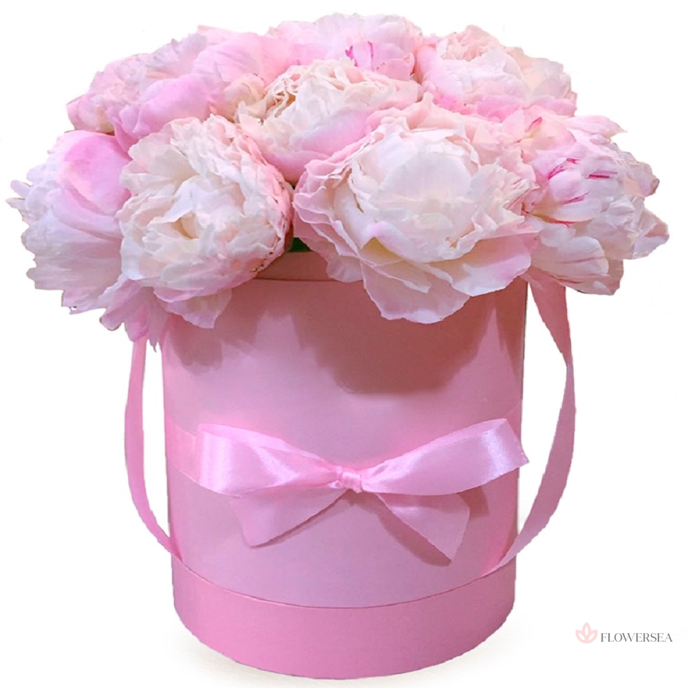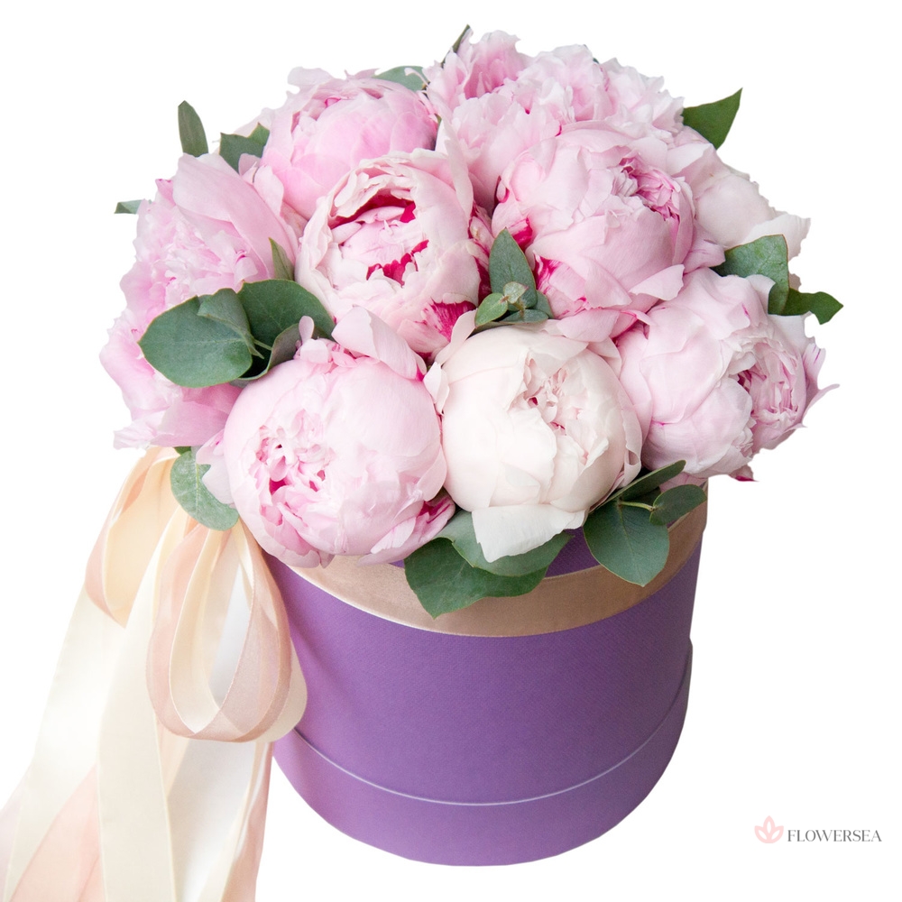 9 півоній в коробці