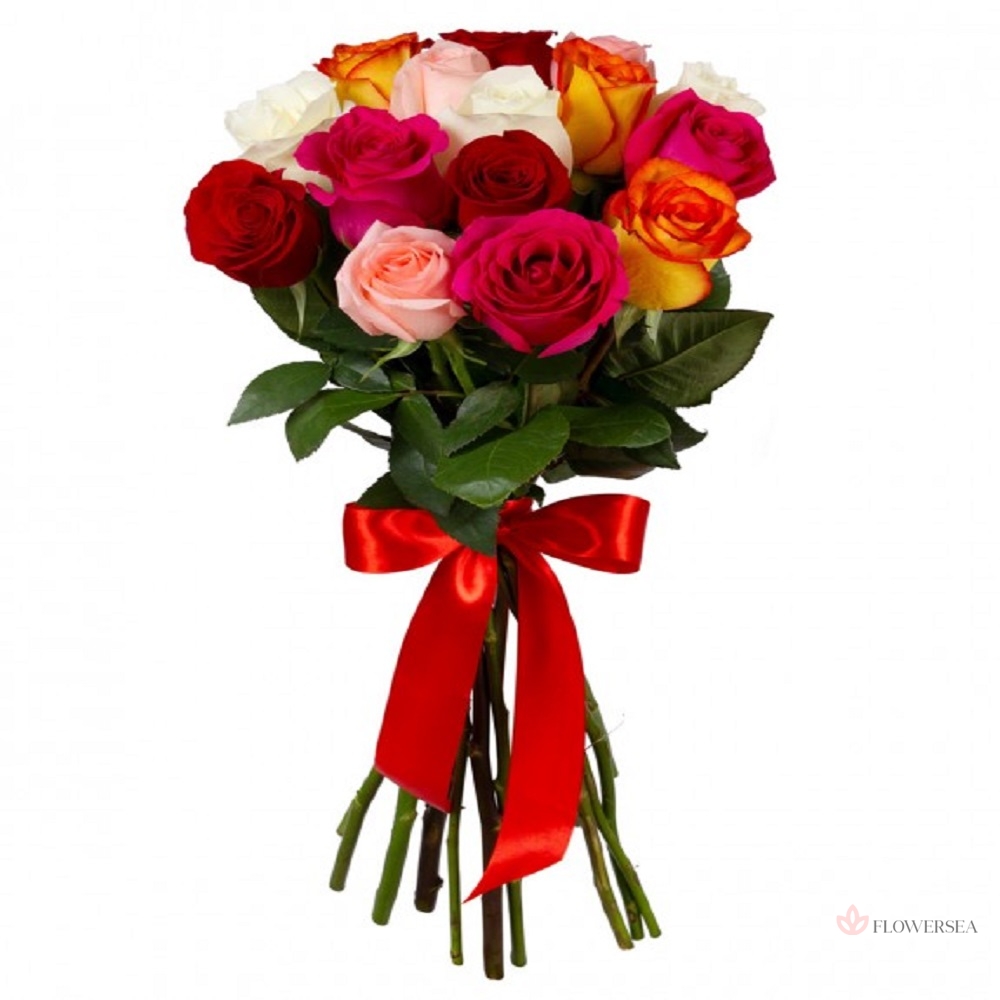 11 різнокольорових троянд