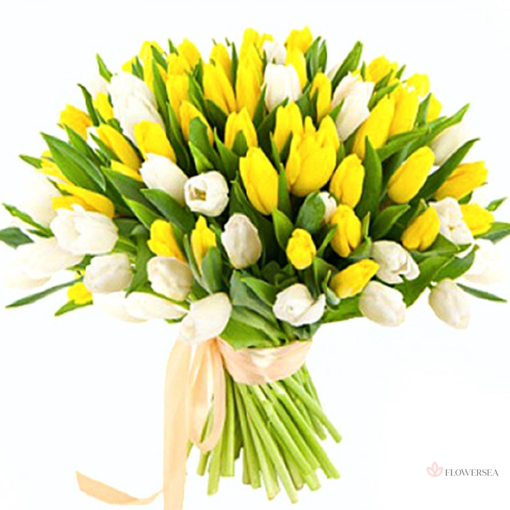 101 білий тюльпан в коробці