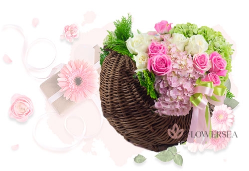 Композиції з квітів в корзині