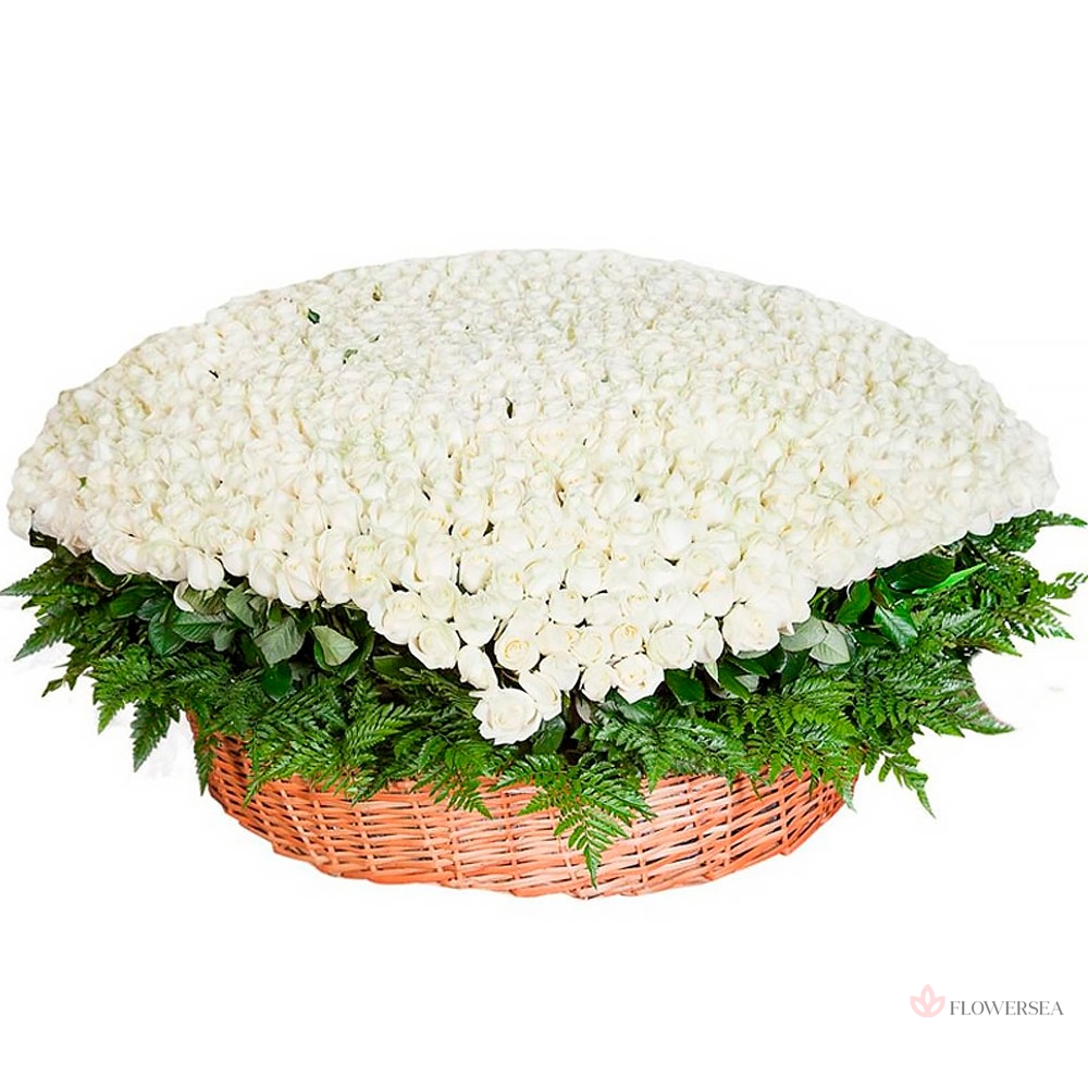 Феєричний кошик з 1001 троянди з листами папороті. Троянди можуть бути будь-якого кольору.