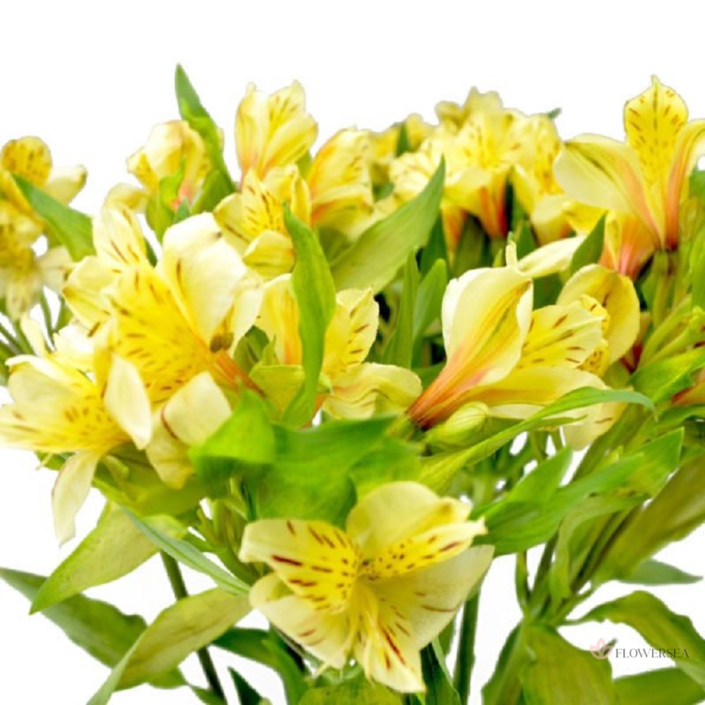 Букет ніжних весняних квітів альстромерій, красиво оформлених атласною стрічкою. Жовті квіти альстромерії є символом дружби, процвітання і успіху. Кожне стебло може похвалитися яскравим кольором. А унікальні перевернуті листя і спіралеподібні візерунки на стеблах, роблять цю квітку дивовижною!