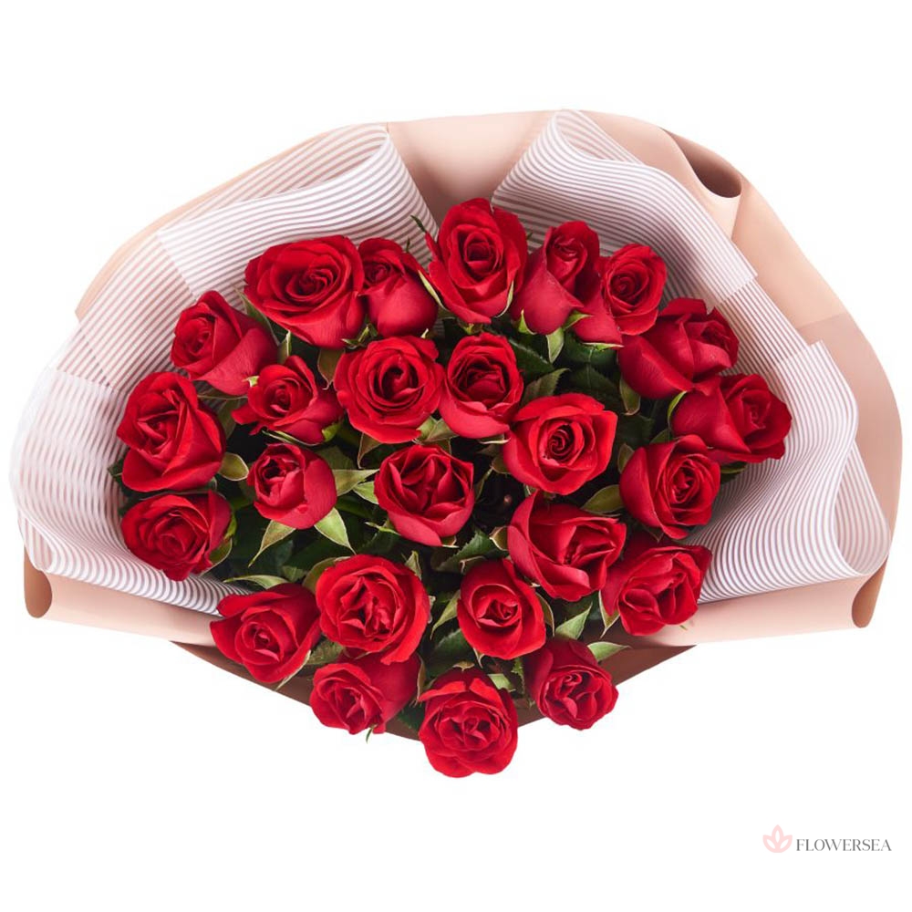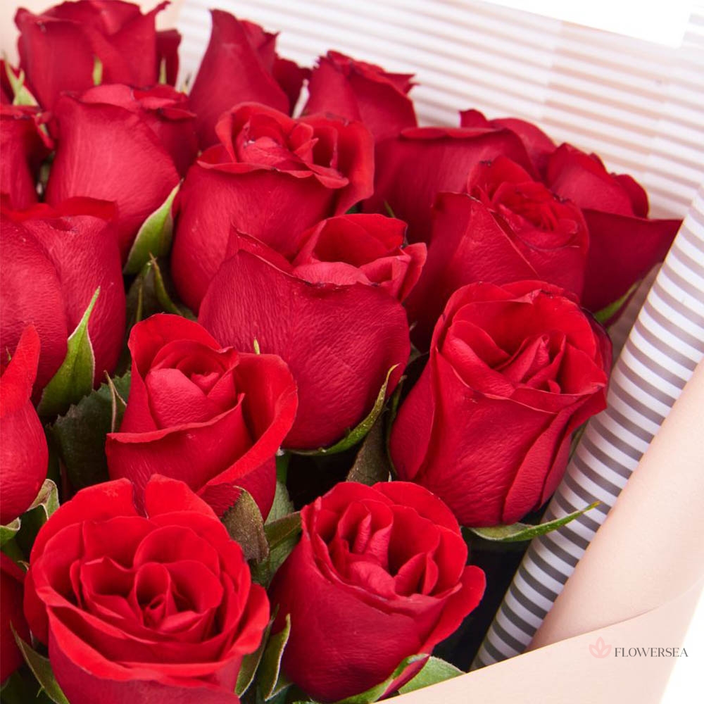 Букет з шикарних червоних троянд, квітів кохання, пристрасті та захоплення. Квіти гарно оформлені в упаковку та зав'язані атласною стрічкою.