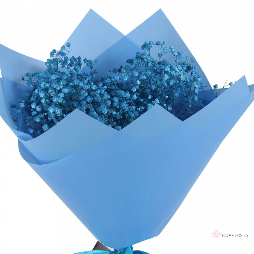 Букет блакитних, ніжних, немов хмаринка, гілочок гіпсофіл в декоративному оформленні.