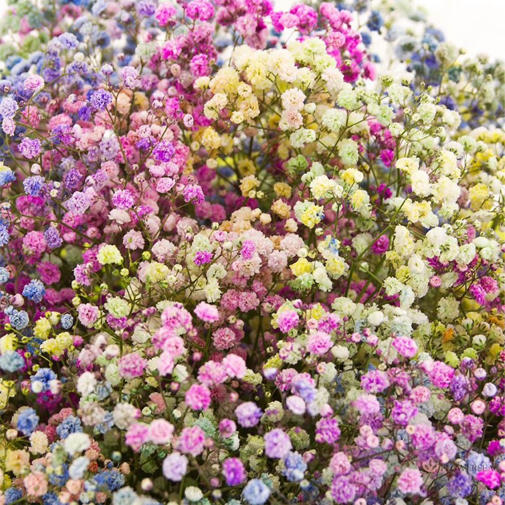 Ніжний як хмаринка букет райдужно яскравих гіпсофіл в упаковці.