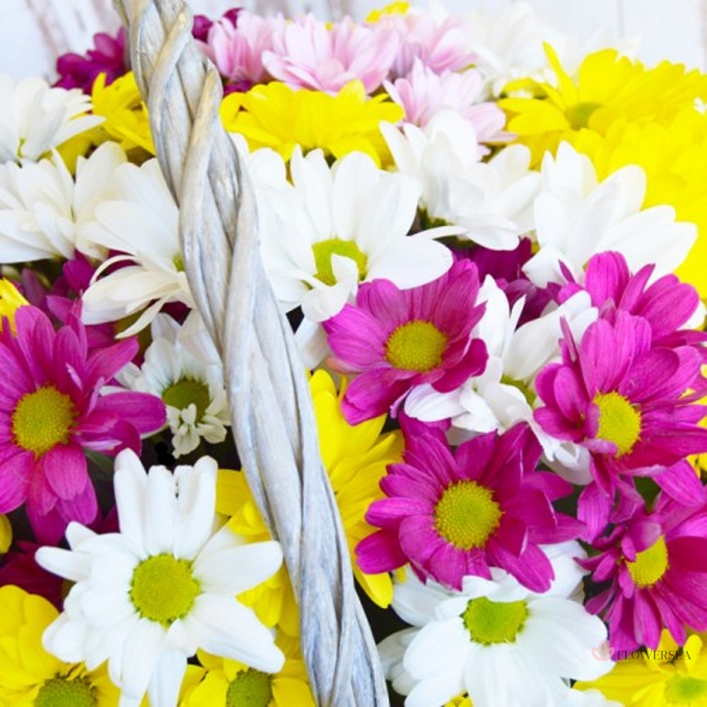 Яскраві та червоні 19 гілок хризантеми у кошику.